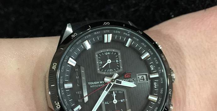 Необрит Специальное покрытие обеспечивает длительное послесвечение в темноте даже после кратковременного нахождения на свету.Питание от солнечной энергии. Аккумулируя световую энергию, солнечная панель обеспечивает питание для работы часов.Радиоконтроль (Европа, США, Япония, Китай). Встроенный приемник обеспечивает отображение точного времени на территории почти всей Европы, США, Японии и Китая. Часы, отмеченные данным символом, могут принимать сигналы DCF, MSF, WWVB, JJY и BPC.Данные о прохождении этапов (10) Память для результатов прохождения этапов, включая дату и время прохождения этапа. Цифра соответствует максимально возможному количеству хранимых записей.Мировое время Обеспечивает отображение текущего времени в некоторых городах и определенных регионах мира.Формат времени 12/24 Время может отображаться как в 12-часовом, так и в 24-часовом формате.Ежечасный сигнал Подача сигнала при наступлении каждого новго часа.Полностью автоматический календарь Автоматически учитываются месяцы разной продолжительности и високосные годы.Защита заводной головки Застежка с тройным сгибом, расстегиваемая одним касанием.