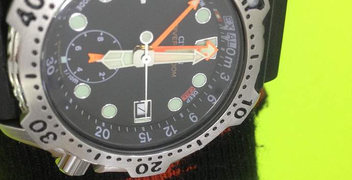 Отображение даты Отображение текущей даты в аналоговых часах.Неоновая подсветка. Подсветка в часах эмитирует ультрафиолетовый свет. Дисплей и стрелки имеют флюорисцентное напыление. В результате этого создается специальный световой эффект, выделяющий каждую из цифр на дисплее.Датчик глубины Позволяет следить за глубиной погружения.Сигнал предупреждения о времени погружения Сигнал предупреждения о максимальной глубине погружения Секундомер (макс. 1 час) Точное измерение истекшего времени касанием кнопки. Дробь соответствует величине, с точностью до которой производится измерение, а число часов - максимально измеряемому времени.