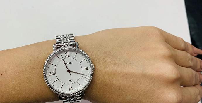 Супруг подарил мне эти часики на День рождения и угодил. Очень хотела себе часы на стальном браслете. Модель достаточно крупная, но не смотрится громоздко, так как корпус тонкий. Понравилась инкрустация кристаллов по браслету, выглядит нежно и женственно.