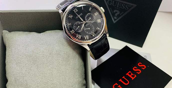 Корпус модели из нержавеющей стали, кожаный ремешок, циферблат с тремя дополнительными окошками с указаниям дня недели, текущей датой и форматом времени 12/24 часа.
